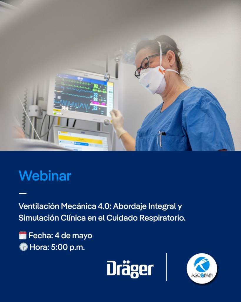 Te invitamos a participar en nuestro gran Webinar Interuniversitario: Ventilación Mecánica 4.0, un espacio exclusivo nacido de la alianza estratégica entre @Dräger y @ASCOFAFI (Nodo Centro). 🤝🌐